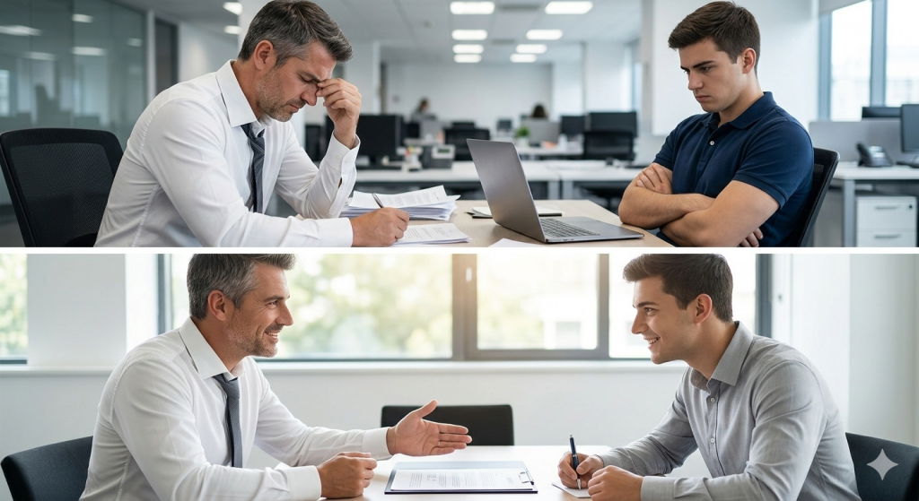 ความใจดีต้องมาพร้อมความชัดเจนครับ หากคุยกันแล้วยังไม่ดีขึ้น ต้องมีการวางแผนปรับปรุงผลงาน (PIP) ที่มีตัวเลขวัดผลได้
